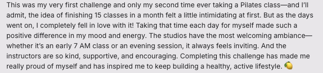 Take 15 Pilates classes in 30 days and build habits that actually stick.